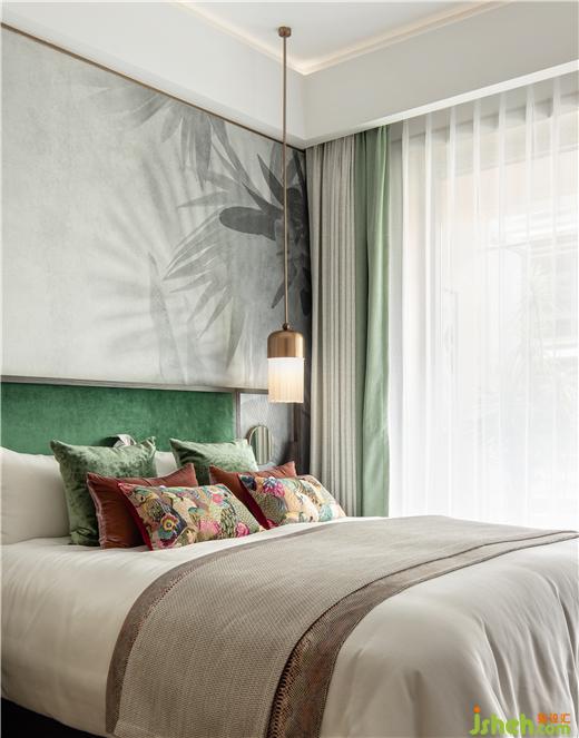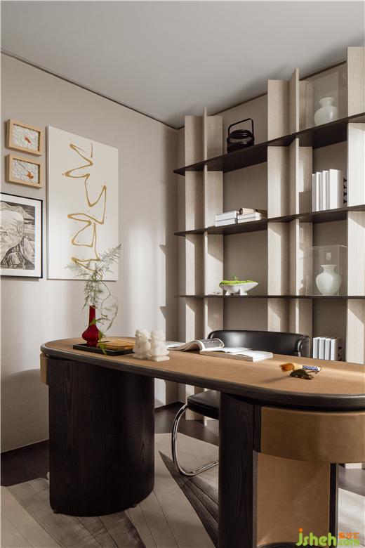 無論是書房還是臥室都運(yùn)用了大量的東方寫意元素,家居溫潤的暖木材質(zhì)讓居住空間充滿了溫情,武漢綠城湖畔雲(yún)廬樣板房設(shè)計(jì)搭配禪意的綠植,如沐春風(fēng)。