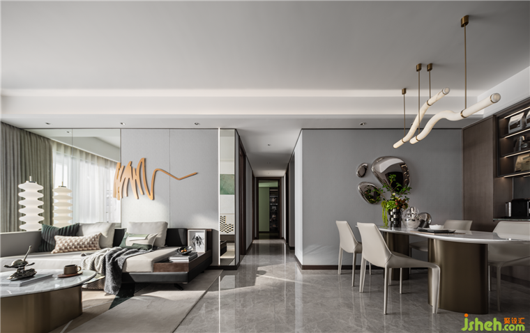 餐廳里的時光是家最美好的記憶,它是承托生活的支點,陳設(shè)以精致的餐具和具有藝術(shù)氣息的裝飾營造出愉悅的用餐氛圍。