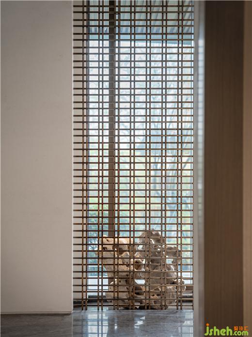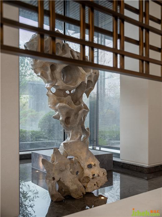 奇石造景,從室內(nèi)格柵望去,隱秘而自然,光與影通過玻璃與大理石表達(dá)出豐富的層次,當(dāng)產(chǎn)品與藝術(shù)對(duì)話,常州中建中吳大道售樓中心裝修設(shè)計(jì)空間也被賦予了自由的靈魂。