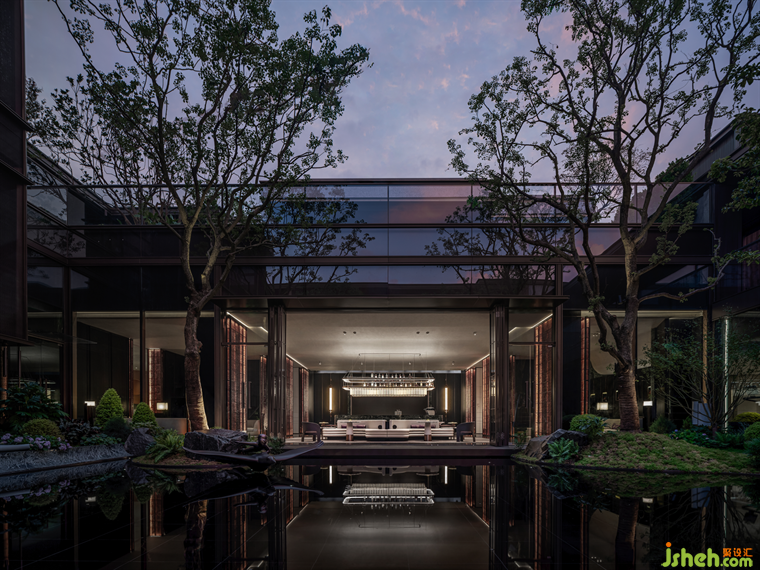 建筑“盒子”漂浮于水面,簡(jiǎn)潔而內(nèi)斂的線(xiàn)條貫穿水面,無(wú)限延伸。 營(yíng)銷(xiāo)中心設(shè)計(jì)空間的轉(zhuǎn)換,自然的氣韻,讓人被寧?kù)o的氛圍包裹,如夢(mèng)縹緲,吐納山水。