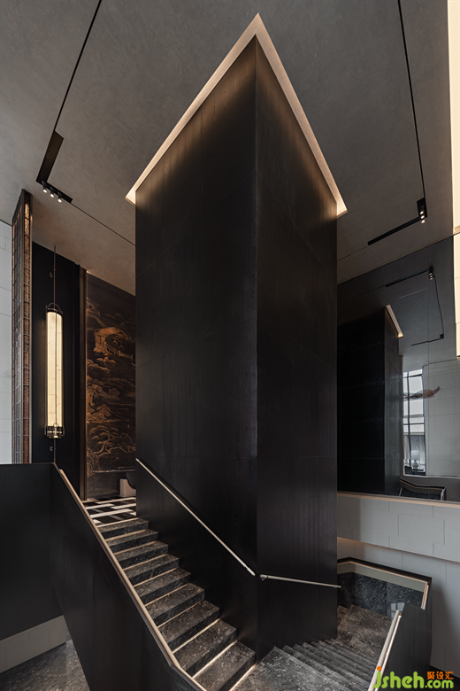 光與影在空間中不同層次的藝術(shù)表達(dá),令人愉悅,扣人心弦。萬(wàn)物與藝術(shù)的對(duì)話(huà),因應(yīng)自然,為空間賦予了自由的靈魂。樓梯以向上的姿態(tài),指引空間精神本質(zhì),木飾面與奢石的塊面構(gòu)成,彼此穿插,為空間構(gòu)建視覺(jué)與感官的雙重享受。