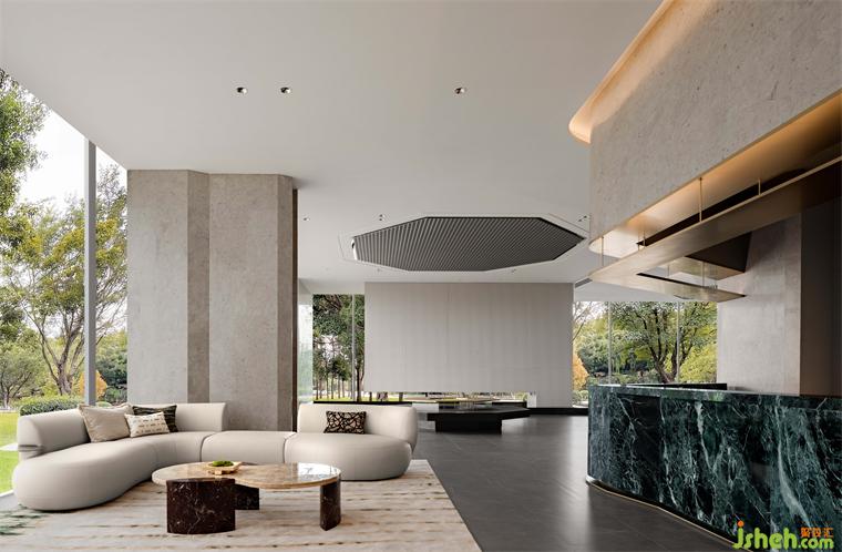 洽談區(qū)以淡雅的配色,簡約的陳設,啟迪參觀者自然之外,山水之間的精神世界。售樓處設計流暢的曲面造型家具隱喻著永恒的生命循環(huán),賦予空間無限的張力與能量,探尋人與自然的共生之道。