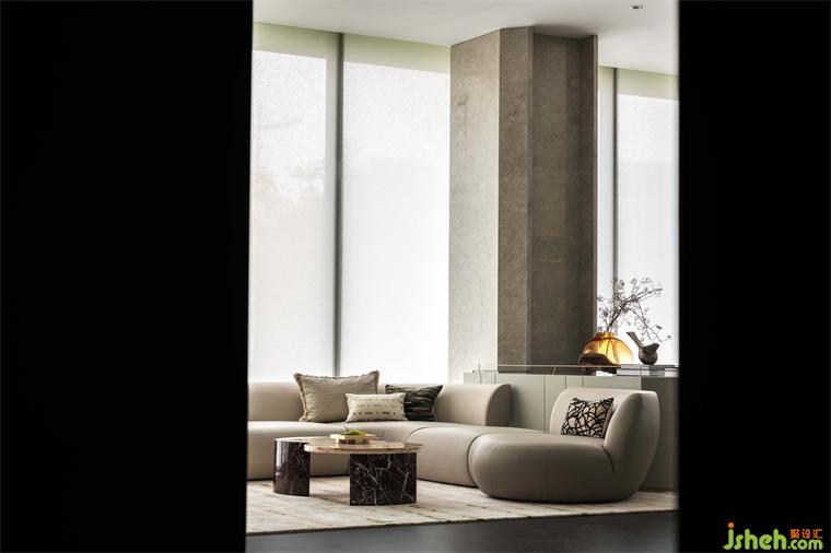時光如潮,光痕漸現(xiàn)。巨幅落地窗將自然景色與室內(nèi)空間融合,臨窗而坐,在靜謐之間與自然對話。蘊含自然紋理的家具隱喻著生命的秩序,在柔光中承載著造物者的夢境與詩意。