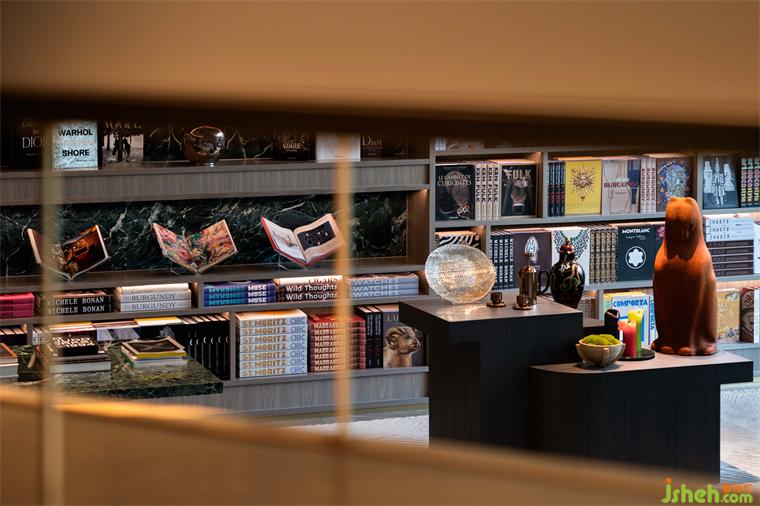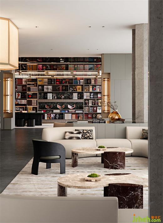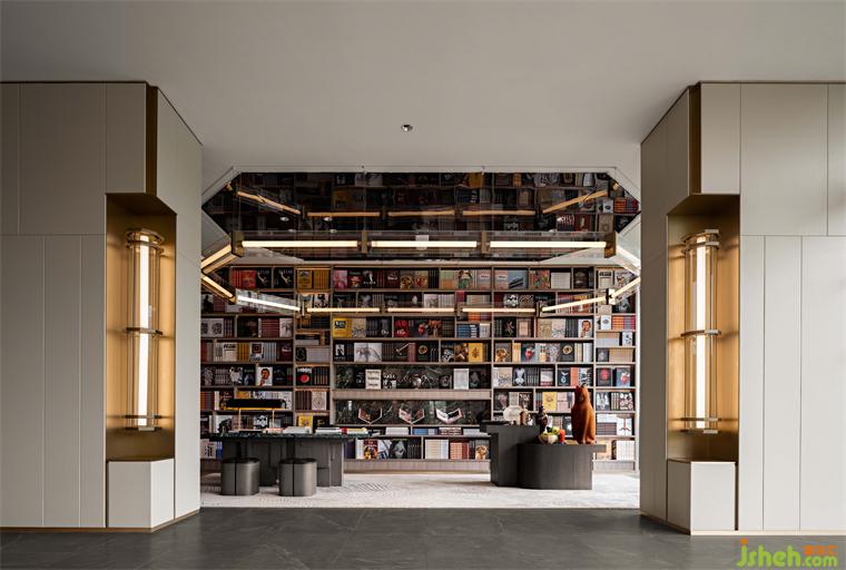 進入閱讀區(qū),滿墻的書籍展示出豐富的精神世界,調(diào)動人們的多重感官體驗,入口以對稱式的藝術壁燈呈現(xiàn)出閱讀的儀式感。