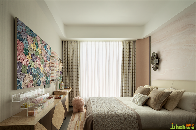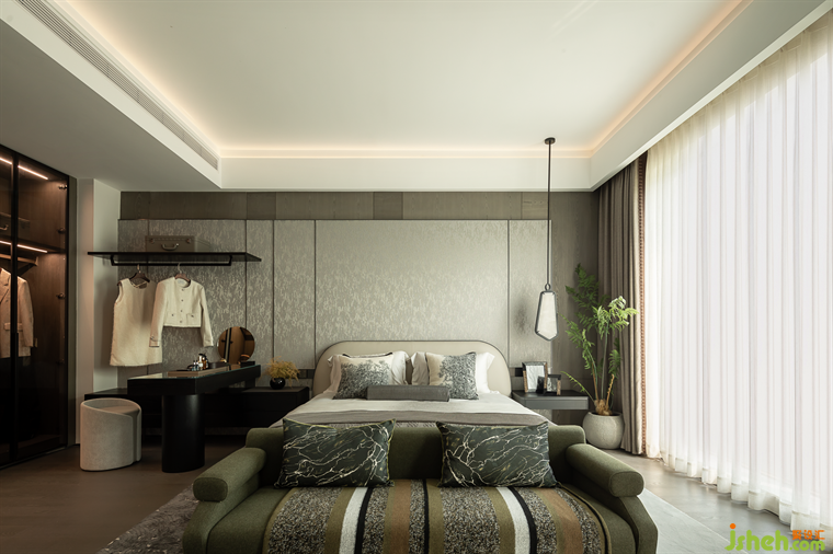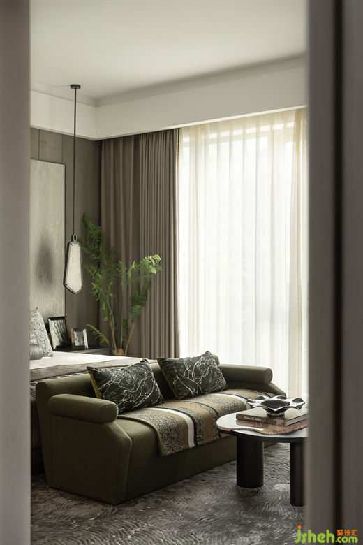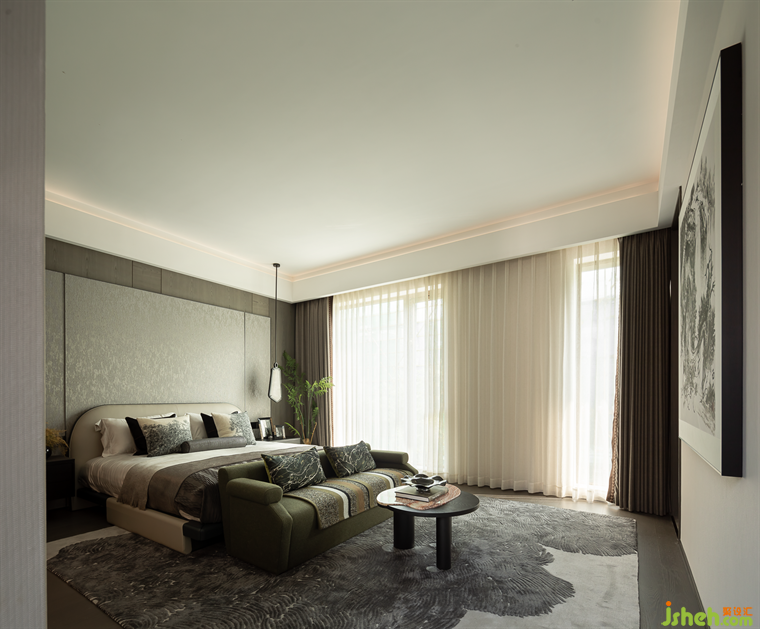 主臥運(yùn)用云石,云紋等元素打造云朵般純凈雅致的空間。歸閑舍,看云起,云隱于心。臥室是人們心靈休憩的地方,希望打造具有歸屬感的空間,歸去來兮,吾歸何處?云起,當(dāng)此去。