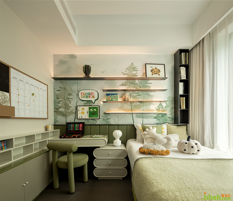 兒童房希望為孩子們打造一個(gè)充滿想象和童真的自然世界。在這里,孩子們可以像探險(xiǎn)家一樣去發(fā)現(xiàn)和探索大自然的奧秘,體驗(yàn)大自然的神奇和美好。