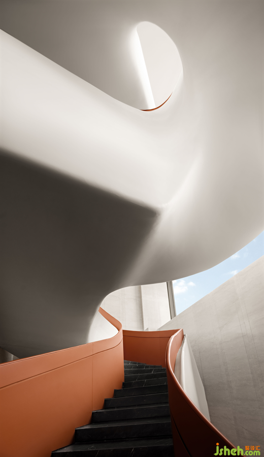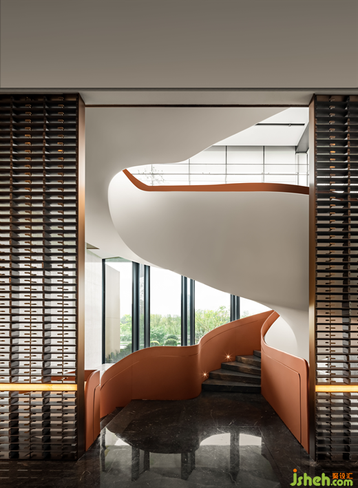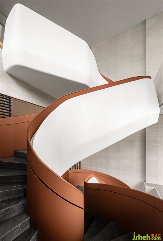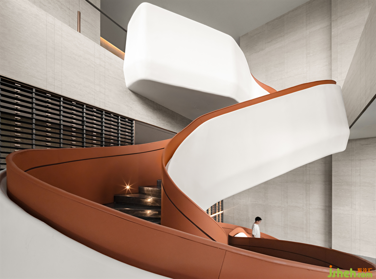東方紅與雅白交疊的藝術旋梯綿延而上,去繁從簡,延續(xù)經(jīng)典,營銷中心設計承載著東方園林曲徑通幽的婉轉與詩意,宛如一條縹緲的緞帶,于空中輕舞,譜寫方寸間的優(yōu)雅浪漫。