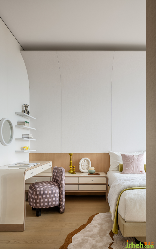 次臥的設(shè)計融合了細(xì)膩與奢華,仿佛每一個角落都在訴說著愛的故事,令人沉醉在這份浪漫的氛圍中。