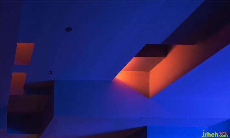 After the beam and pipe are coated,the stacked block relationship is naturally formed.In the cavity,color lighting design is added to form a psychedelic "skylight" effect.