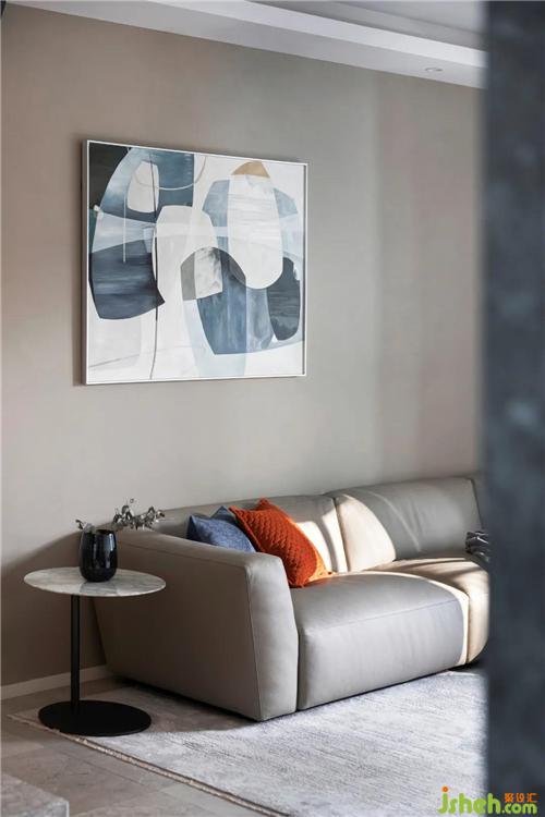 餐桌邊,一大幅抽象畫冷暖有度,裝修設(shè)計(jì)輕松隨性。