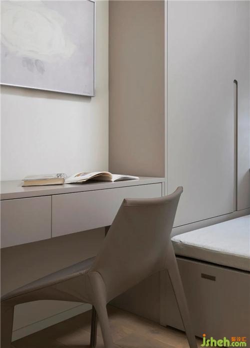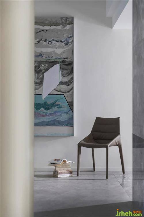 At the dining table, there is a large abstract painting. The cool and warm colors are just right, which makes the family feel relaxed.
