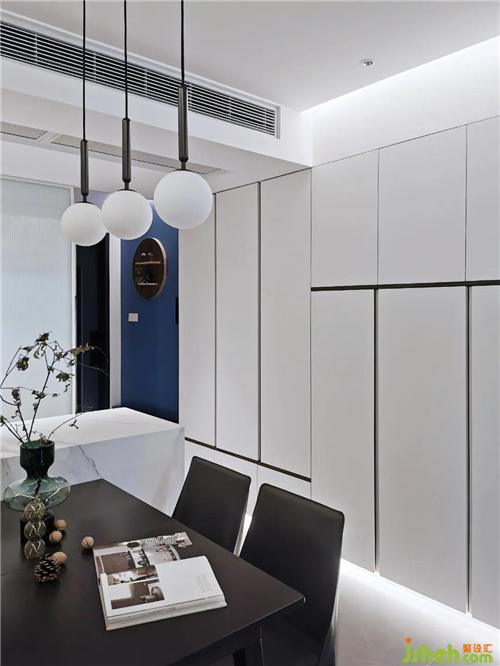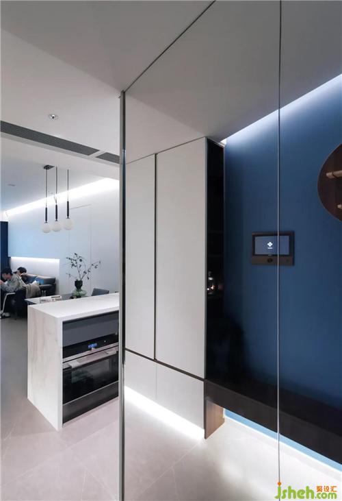 玄關(guān)之內(nèi),一墻銀鏡,反射出雙倍的線性光。裝修設(shè)計(jì)復(fù)行十步,豁然開(kāi)朗,這是生活的明度。