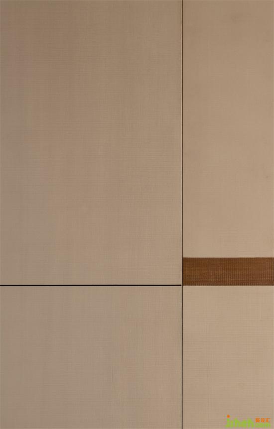 前文提到的設(shè)計手法一直延伸到主臥內(nèi)。主臥復(fù)合了書房、衣帽間、臥房、主衛(wèi)四個功能,由多道暗門及隱藏門來分隔。家裝設(shè)計特殊定制的床頭裝置是空間中的亮點,即是燈具,也是屏風,巧妙揉和。