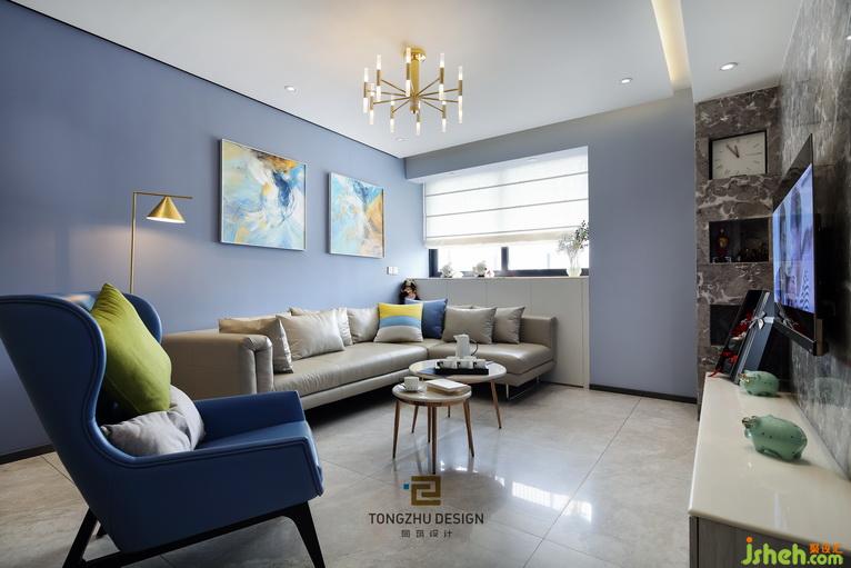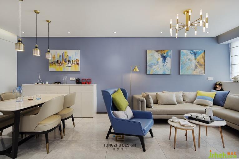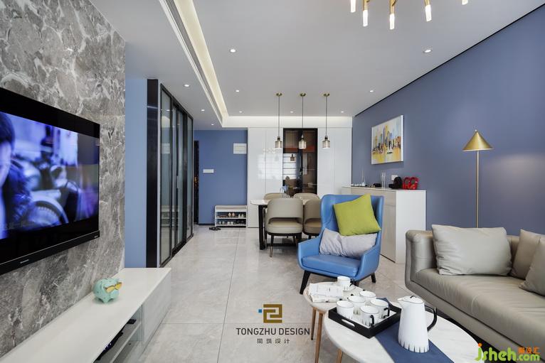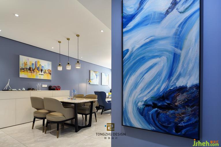 初入屋內(nèi),一幅蜿蜒流暢的藝術(shù)油畫(huà),為簡(jiǎn)單干凈的玄關(guān)獨(dú)添一縷柔和光彩,藍(lán)白相間的視野空間,順著天藍(lán)色的墻壁緩步走進(jìn)客廳,整體的色彩、軟裝搭配呈現(xiàn)出一種廣闊明亮。深圳裝修公司