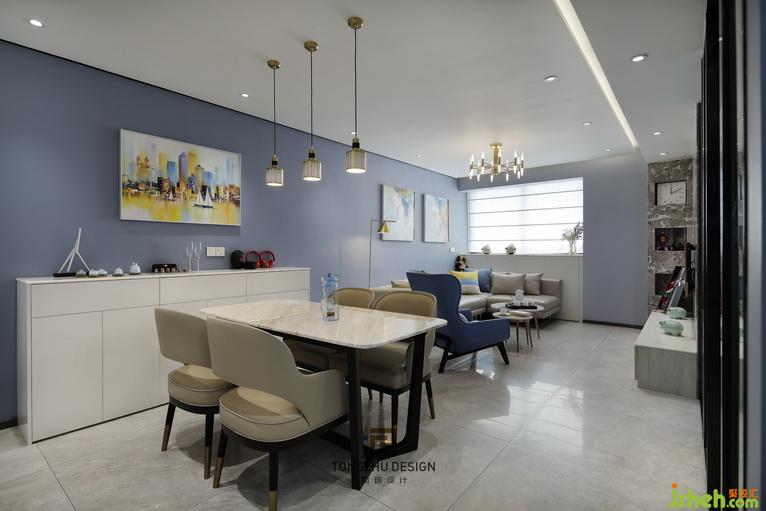 以藍(lán)白作為主色調(diào),象征著自由寬廣,能夠包容一切,稀釋所有情緒,這是開(kāi)放式的餐廳與客廳的設(shè)計(jì),即形成統(tǒng)一,又具有不同功能,而這就是設(shè)計(jì)的精妙處,在有限的空間里,創(chuàng)造無(wú)數(shù)的可能。