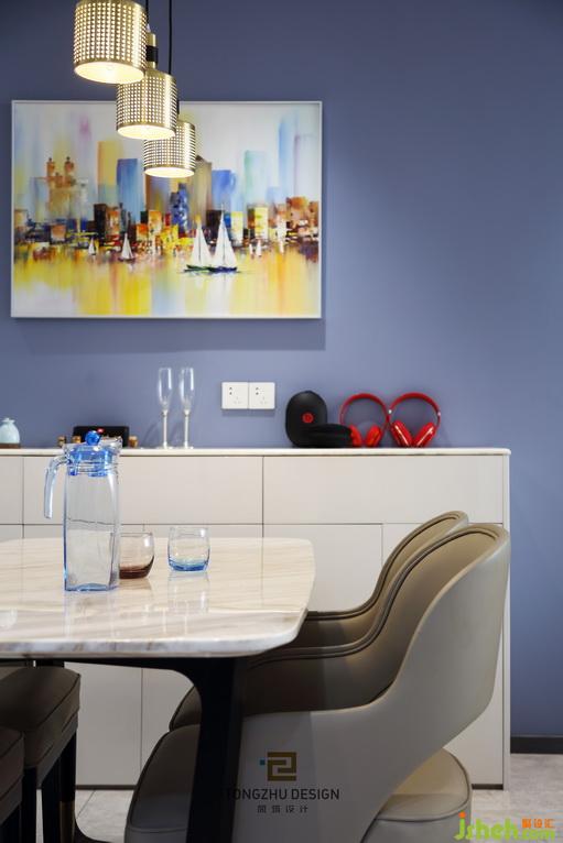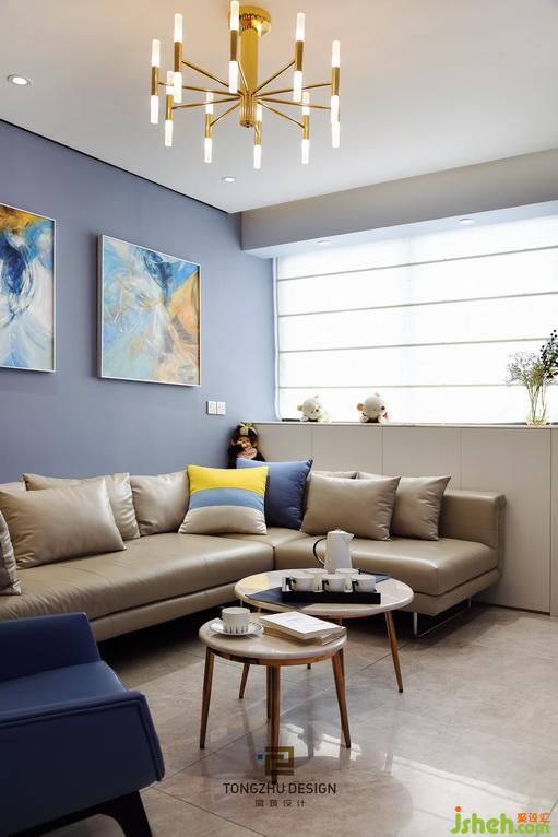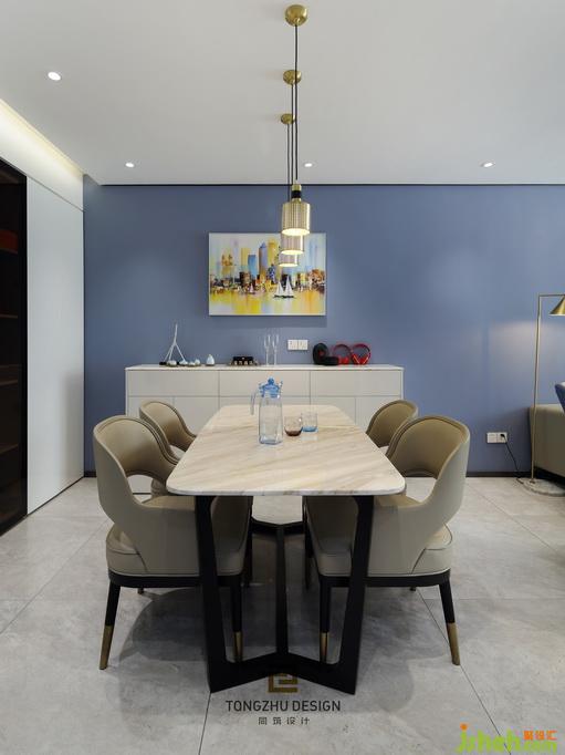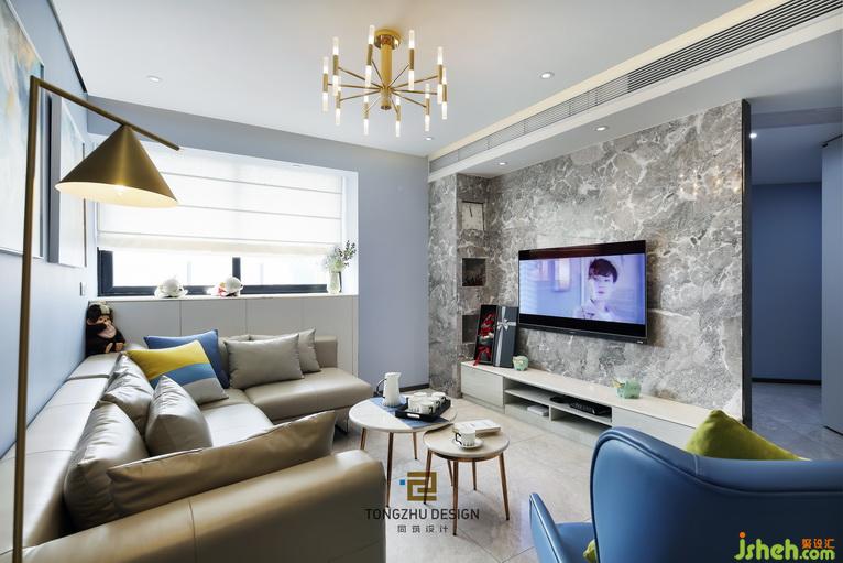 客廳作為休閑空間,藍色是鋪墊純凈的色彩;熱情洋溢的黃色落地?zé)?、吊燈與掛畫,點綴溫暖;搭配高級灰色紋理大理石的電視墻,豐富空間線條層次;擺上些精巧小件,增添一絲樂趣;如此設(shè)計搭配,不僅讓人百看不厭,更打造了一個舒心的客廳氛圍。