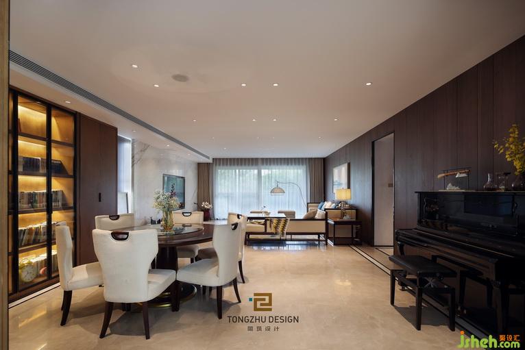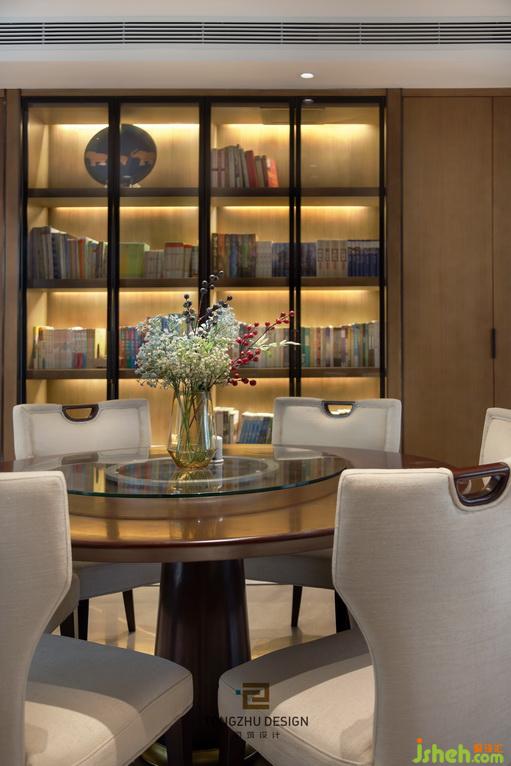 方格之間,叢書落落,是生活當(dāng)有的狀態(tài);圓桌之上,束束草花,是溫馨安然的生活追求;餐廳借由“天圓地方”的禪境概念,呈現(xiàn)出家和、情暖、歲月甚好的畫面。