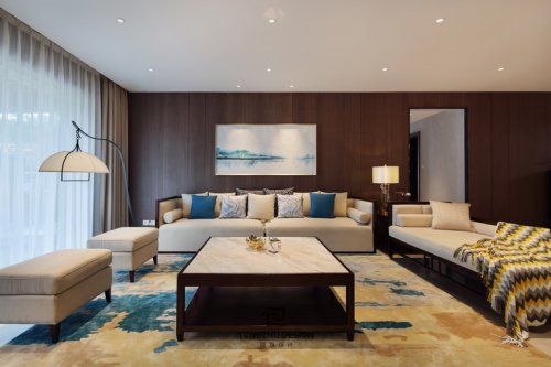 一面是大理石水墨紋理,一面是曠野藍(lán)天,山水相對(duì),讓人身處自然,隨性而坐。深圳裝修公司