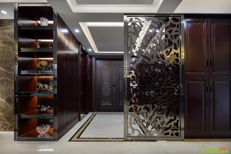 紅木鋪襯,鋼雕屏風,以一層之隔,從輕奢古樸過渡到典雅氣派。