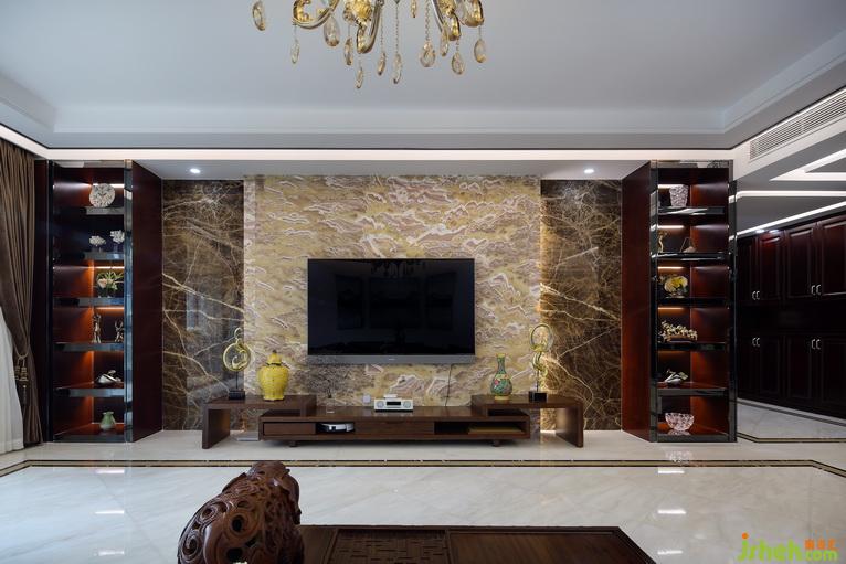 華麗的吊燈映照在大理石磚上,壁上祥云暢游在光影婆沙中,這些金色系的設(shè)計賦予了空間吉祥美好的意境,也點綴出金碧輝煌的豪華時尚風范。