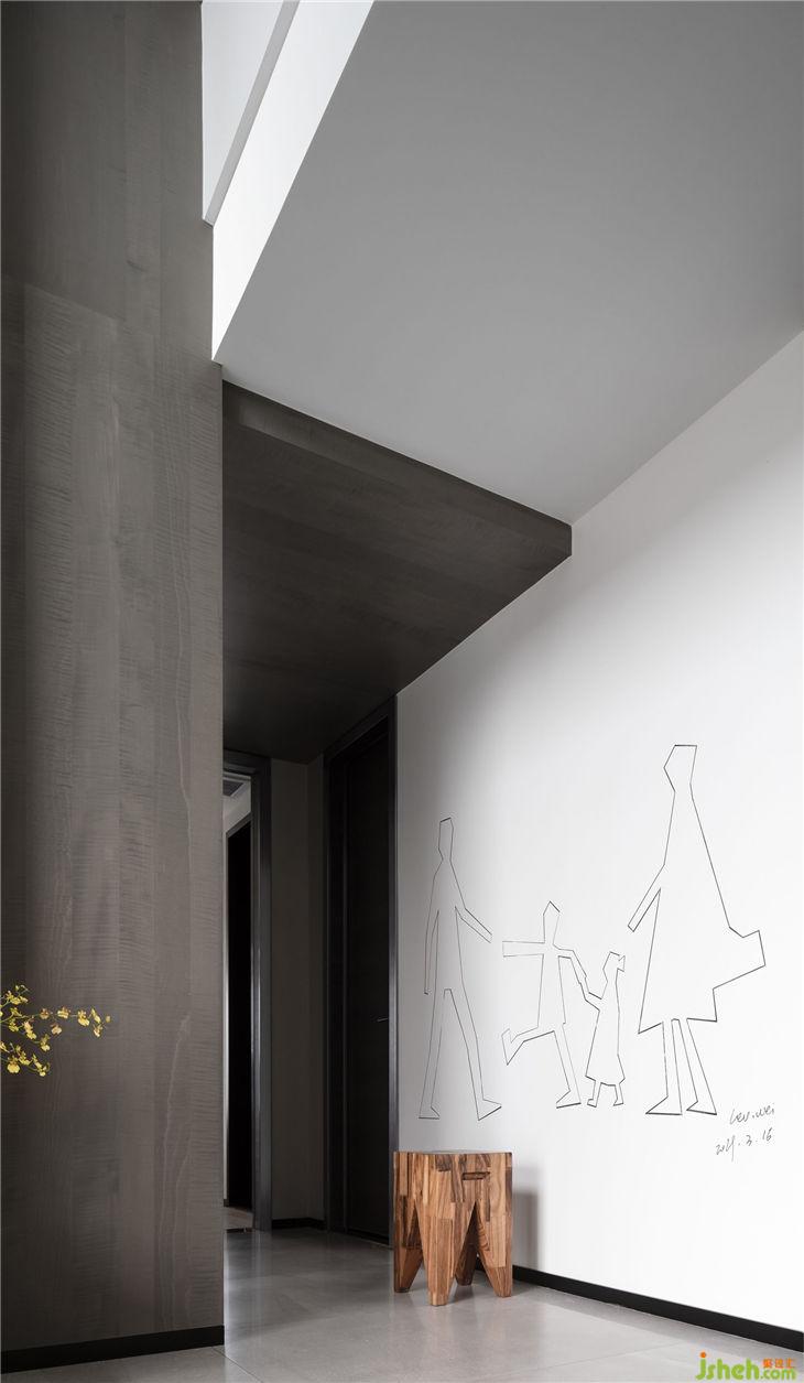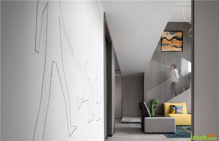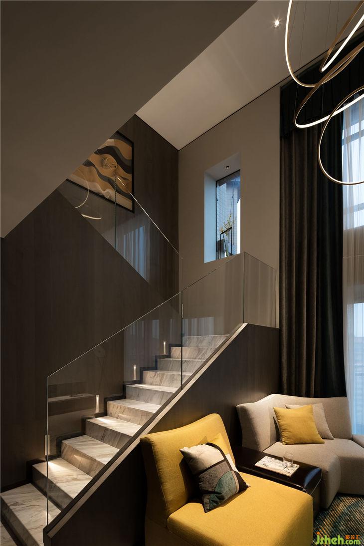 When the darkness has fallen, the light of the wathet blue transmits through the window, the lamp light up inside, the warm light will be filled of every corner in the room. And usage of the point lights and area lights makes the space layer in living room become more abundant, presents the sofly fragrant of the house and also shows the expertly application of the designer for light at the same time.