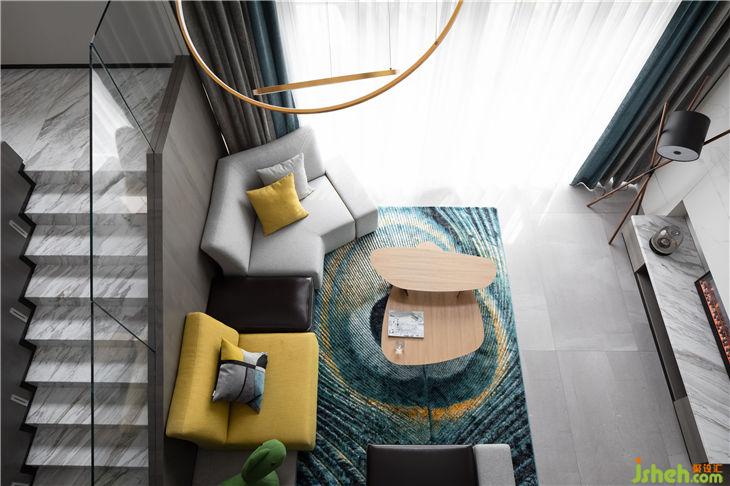 地面漸變色度的地毯,在豐富空間的同時(shí),不破壞空間的整體性;在強(qiáng)調(diào)現(xiàn)代感與藝術(shù)感相結(jié)合的同時(shí),更多的保留舒適感。