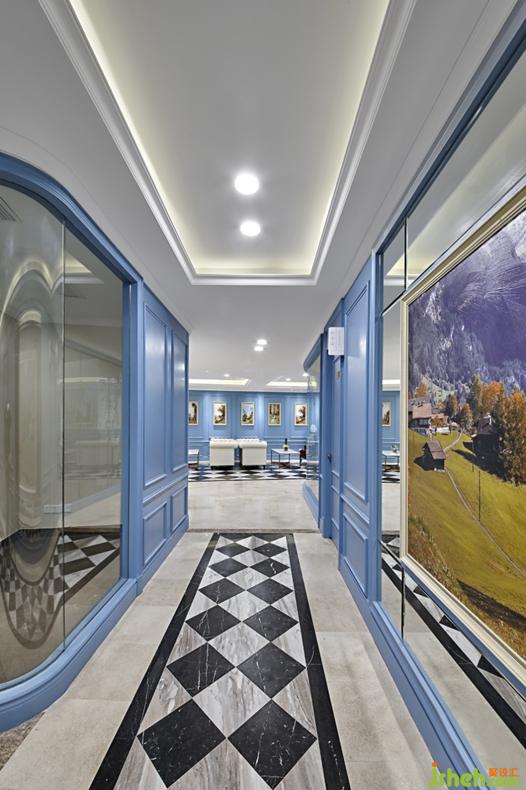 一層強(qiáng)調(diào)英倫的雅致及品位,用淺藍(lán)色歐式墻面穿插整個(gè)空間,強(qiáng)列的空間視角關(guān)系,讓客戶流連忘返,記憶深刻,達(dá)到商業(yè)醫(yī)院經(jīng)營(yíng)的目的。