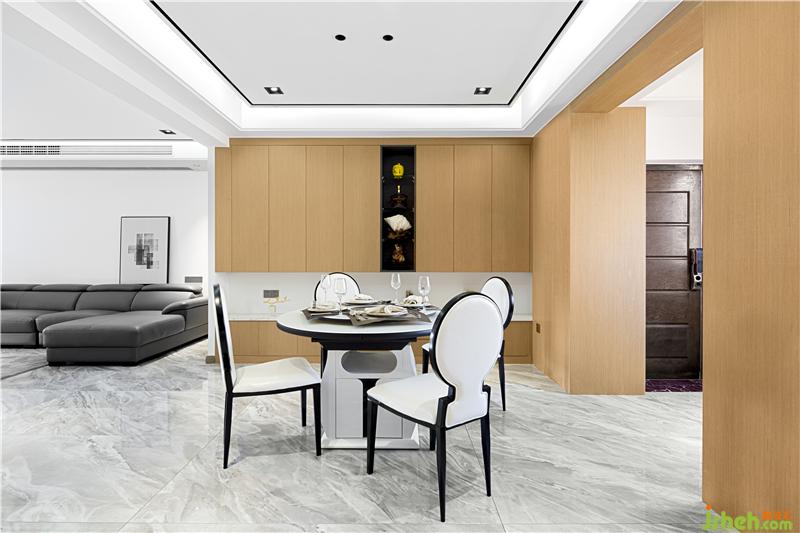 主材:木飾面板、進口巖板、水泥漆、黑色不銹鋼線、進口大理石