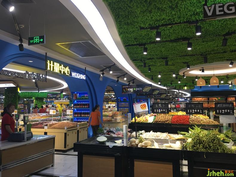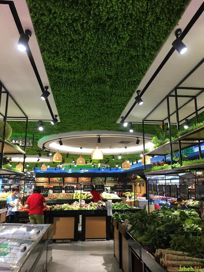 整齊如列兵式的水果貨臺(tái)擺放,以及綠色天花板的無形襯托,使人們由此產(chǎn)生一種天然的環(huán)保享受之感。室內(nèi)設(shè)計(jì)師