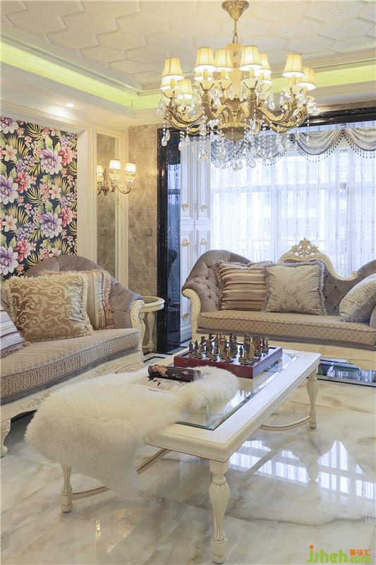 步入客廳,多元化的線條造型中洋溢著時尚與古典的獨特氣質,設計師大量使用了金屬質感的裝飾細節(jié)和家具配飾,每一處空間細節(jié)都在述說著歐洲古典主義美學下的華美與優(yōu)雅。藝術品的裝點為空間中硬朗的線條和材質下的古典奢華美學帶來一份柔情。