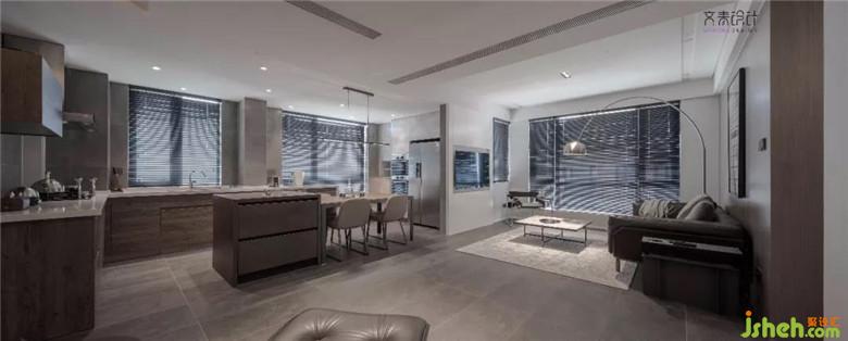 灰色的瓷磚,質(zhì)感很強(qiáng)烈,整體深色調(diào)能保持在一個(gè)色系內(nèi)。