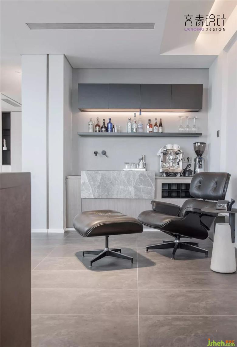 進(jìn)門(mén)的右側(cè)還有一個(gè)酒柜區(qū)域,這可是個(gè)衍生的區(qū)域,滿足業(yè)主閑暇的時(shí)候喝點(diǎn)小酒,制作咖啡的空間,還有一把可以躺著無(wú)比舒適的躺椅。滿足感爆棚。
