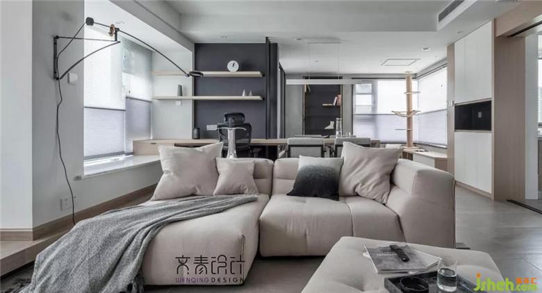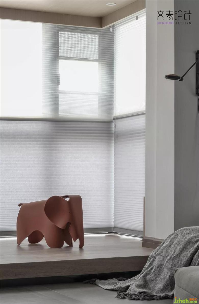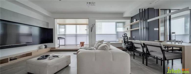 將客廳處的陽臺(tái)內(nèi)包,用抬高層來與客廳做區(qū)域隔斷。在這里,他可以在陽光中做些簡單的文字工作,閱讀等。