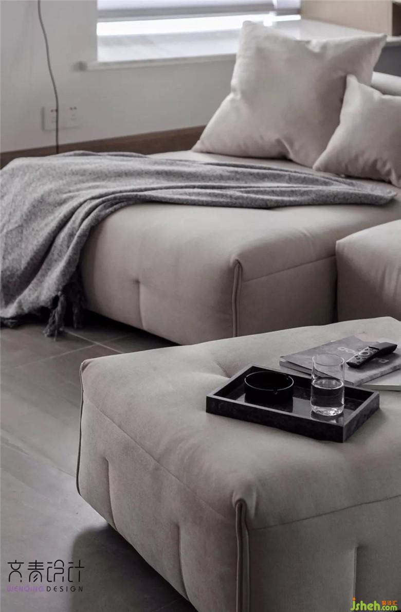主是個(gè)十足的游戲控,除了安裝完現(xiàn)有的游戲設(shè)備還有掌機(jī)外,他還想買個(gè)體感游戲設(shè)備。因此,設(shè)計(jì)師除了將客廳范圍面積擴(kuò)大之外,沙發(fā)選用了移動(dòng)輕便模塊式沙發(fā)。這種沙發(fā)高度沒有普通沙發(fā)那么高,成人可以站坐在沙發(fā)背上。