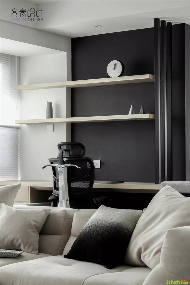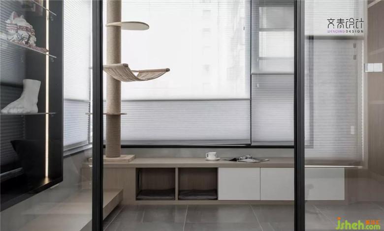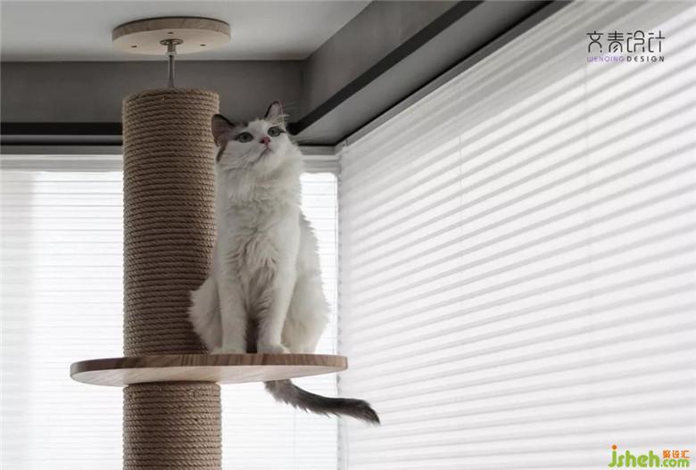 擼貓區(qū),在設(shè)計(jì)師心里其實(shí)并沒有劃分地這么明確,這個(gè)區(qū)域配合飄窗做了個(gè)低矮的儲(chǔ)納納柜,目的是為了讓業(yè)主閱讀休閑時(shí)更方便地與它家的布偶貓更好地互動(dòng)。