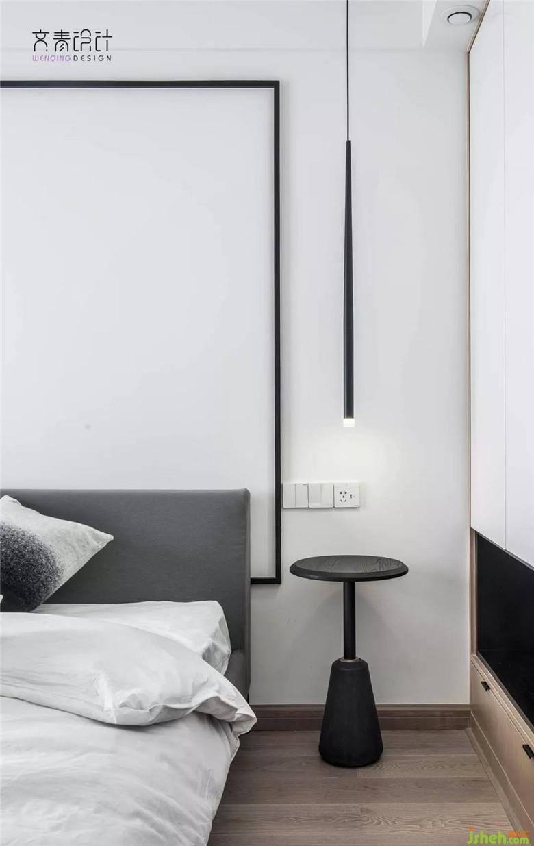 現(xiàn)代式的設(shè)計,背景墻也做得十分簡約,僅僅是乳膠漆墻面加上黑色線條點(diǎn)綴。特別的是這黑色線條則是對應(yīng)客廳電視背景墻的延伸。