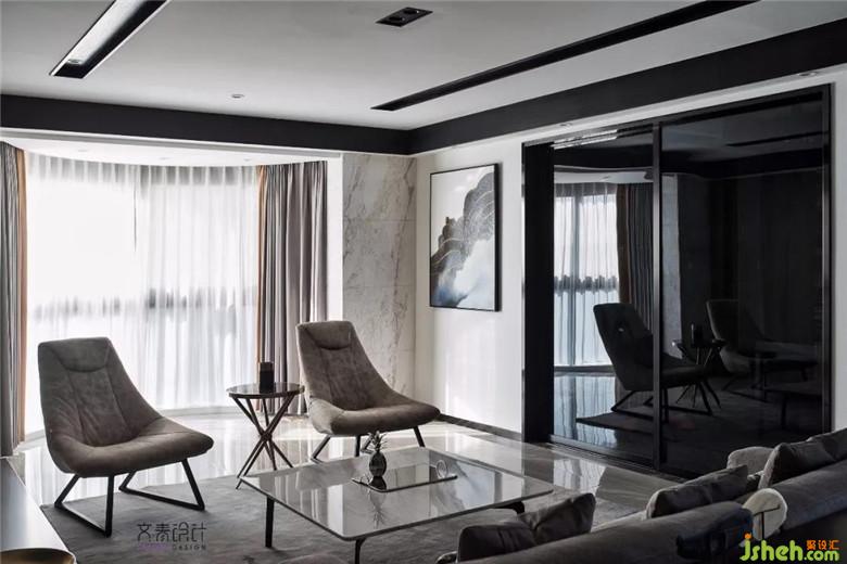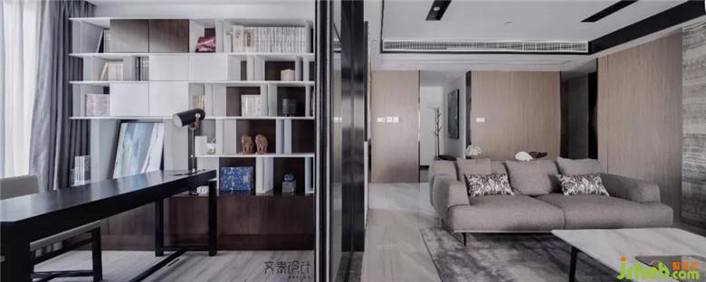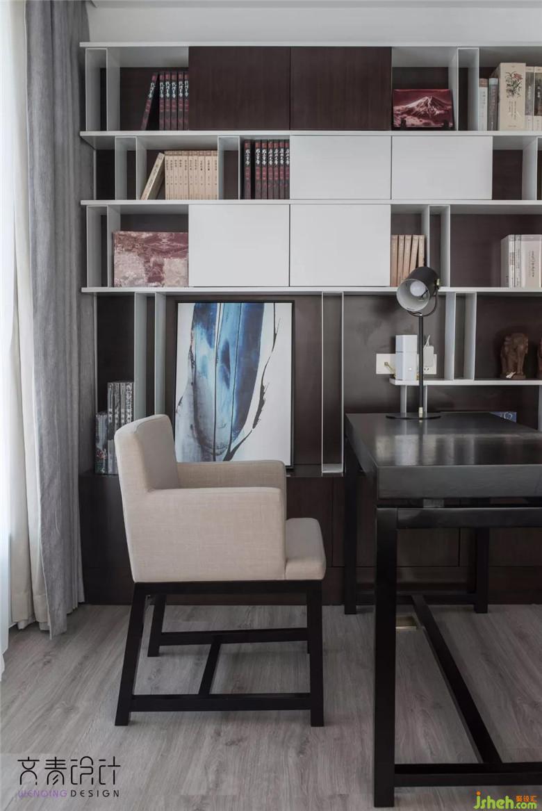 與客廳相鄰的,便是這略帶禪味的書房,冷暖交匯,簡約大氣。