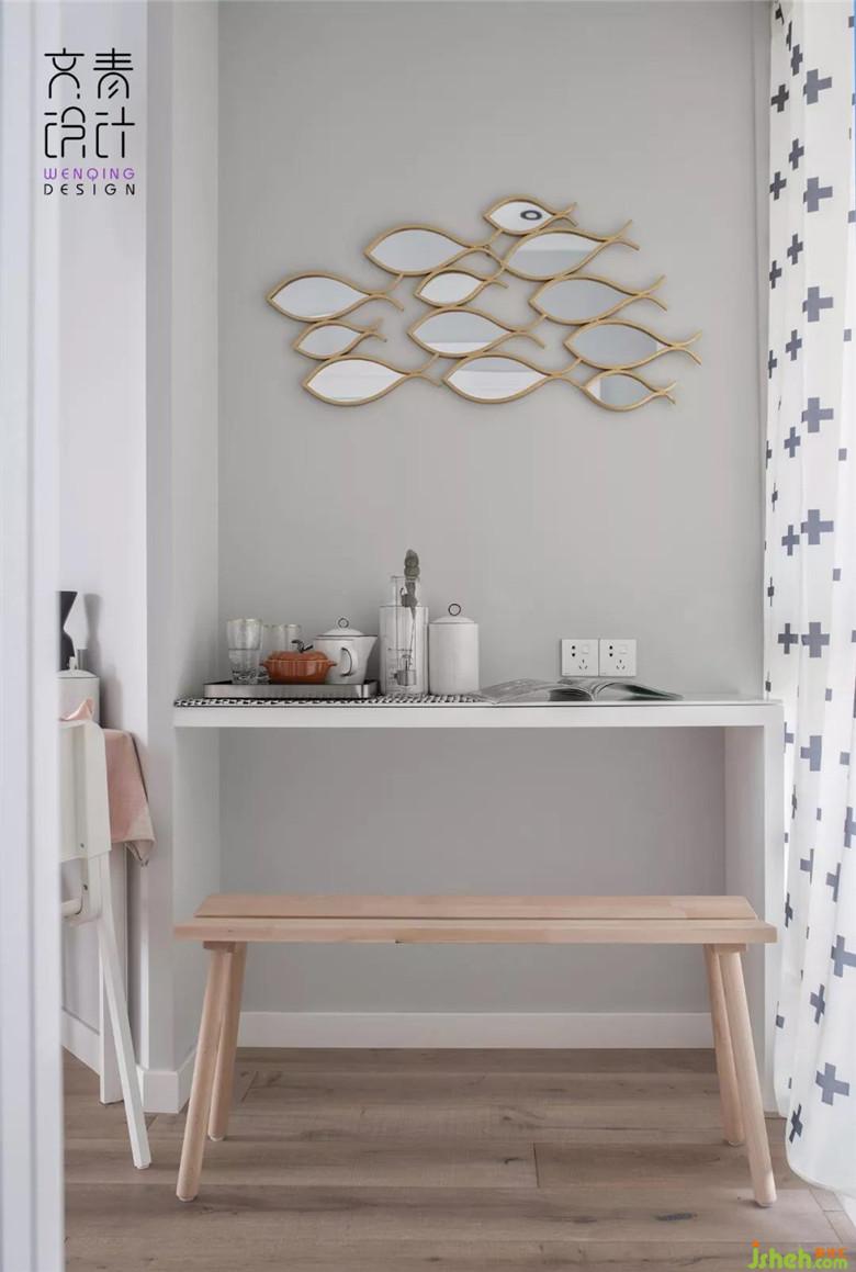 床頭貼上的粉色三角逅舍墻紙讓臥室眼前一亮,淡淡的透露著雅痞的不羈,讓人不由得想探求,此中掩藏的魅惑;不規(guī)則搭配著左側(cè)的鴨嘴雙壁燈,靈動之處又消減了一絲濃重,相對勾勒出一點俏皮感和青春感,呈現(xiàn)了如主人般知性優(yōu)雅的氣質(zhì)。