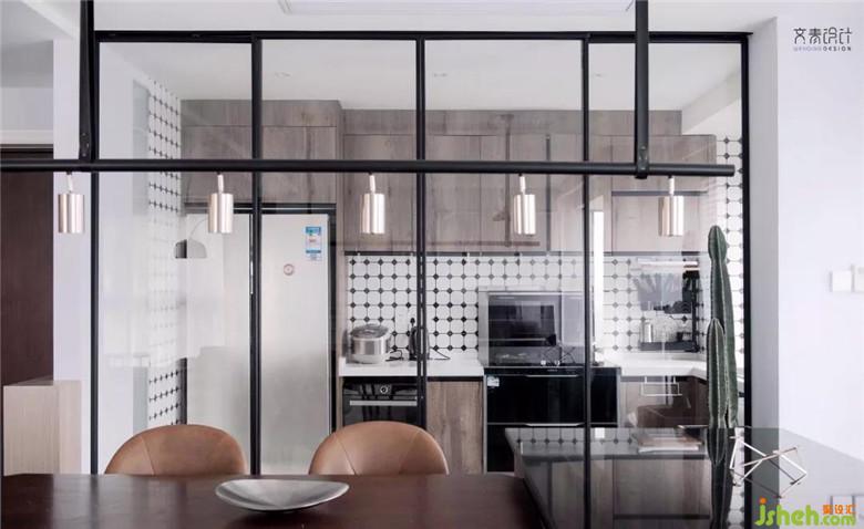 女主人吳小姐有個(gè)煩惱,三代同堂,對(duì)于烹飪方式,開放式廚房上有爭(zhēng)議,后期用玻璃廚房移門,既能保證通透也能有隔斷?;ùu的選擇也有講究,這種方正斑點(diǎn)款式萬(wàn)用型。