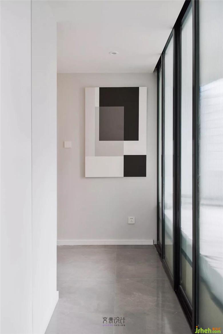 這套房子現(xiàn)代的硬裝,也定做了太多白柜子,若是不加入點顏色,未免太過樸素。于是這面調(diào)了多次的湖藍背景墻就出現(xiàn)了。