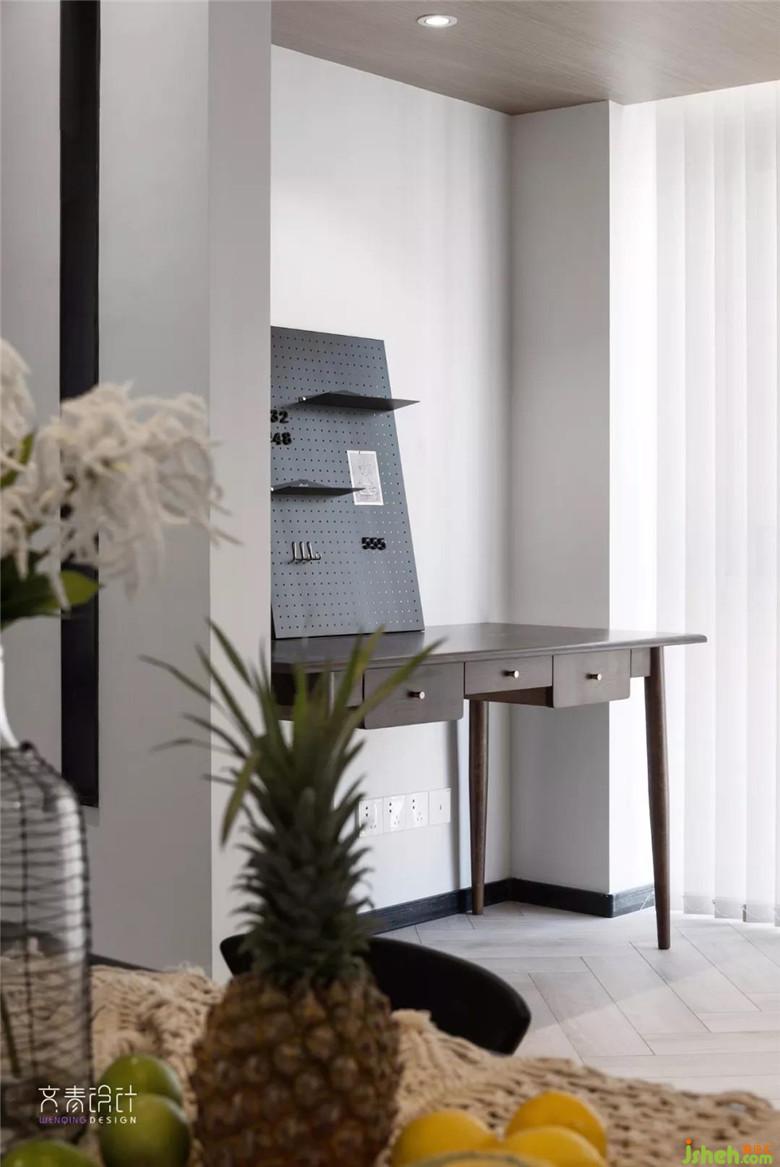 在不是承重墻的位置鏤空,用槽鋼收口,讓視覺貫穿,也是一種營造氛圍感方法。