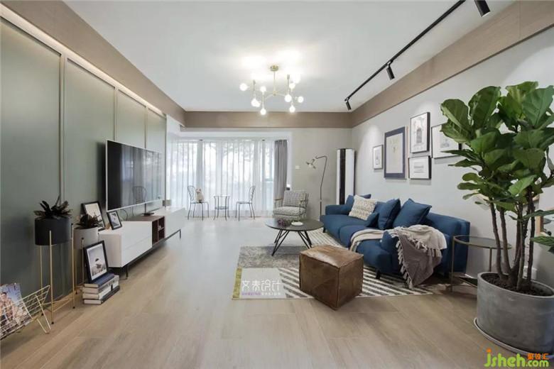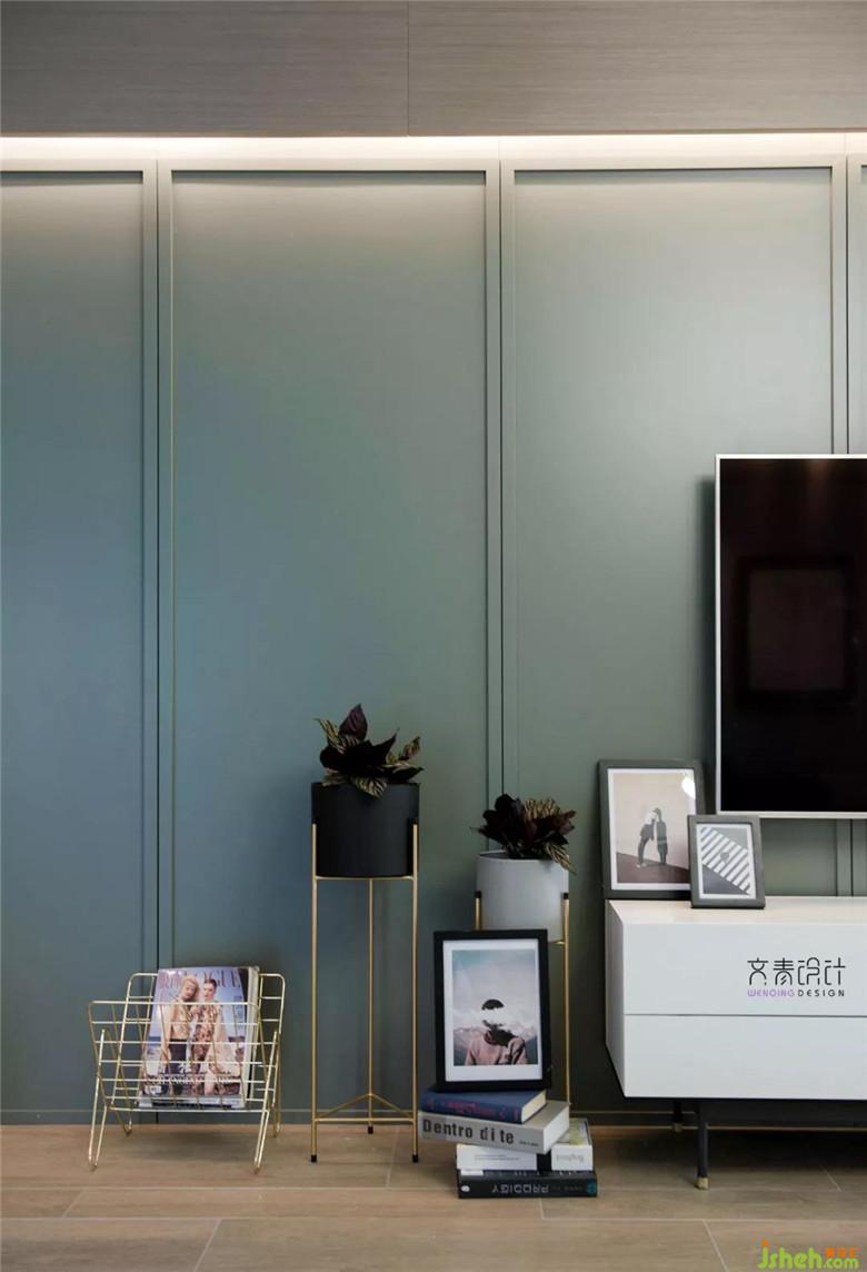 主沙發(fā)、單人懶人沙發(fā)等家具則是選用體態(tài)輕盈的款式;在低飽和度色彩的墻上作大塊面線條處理,以及組合裝飾畫修飾。