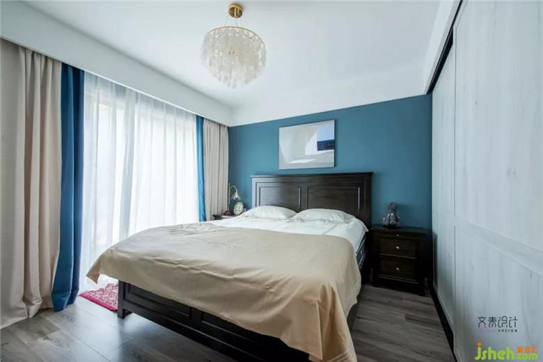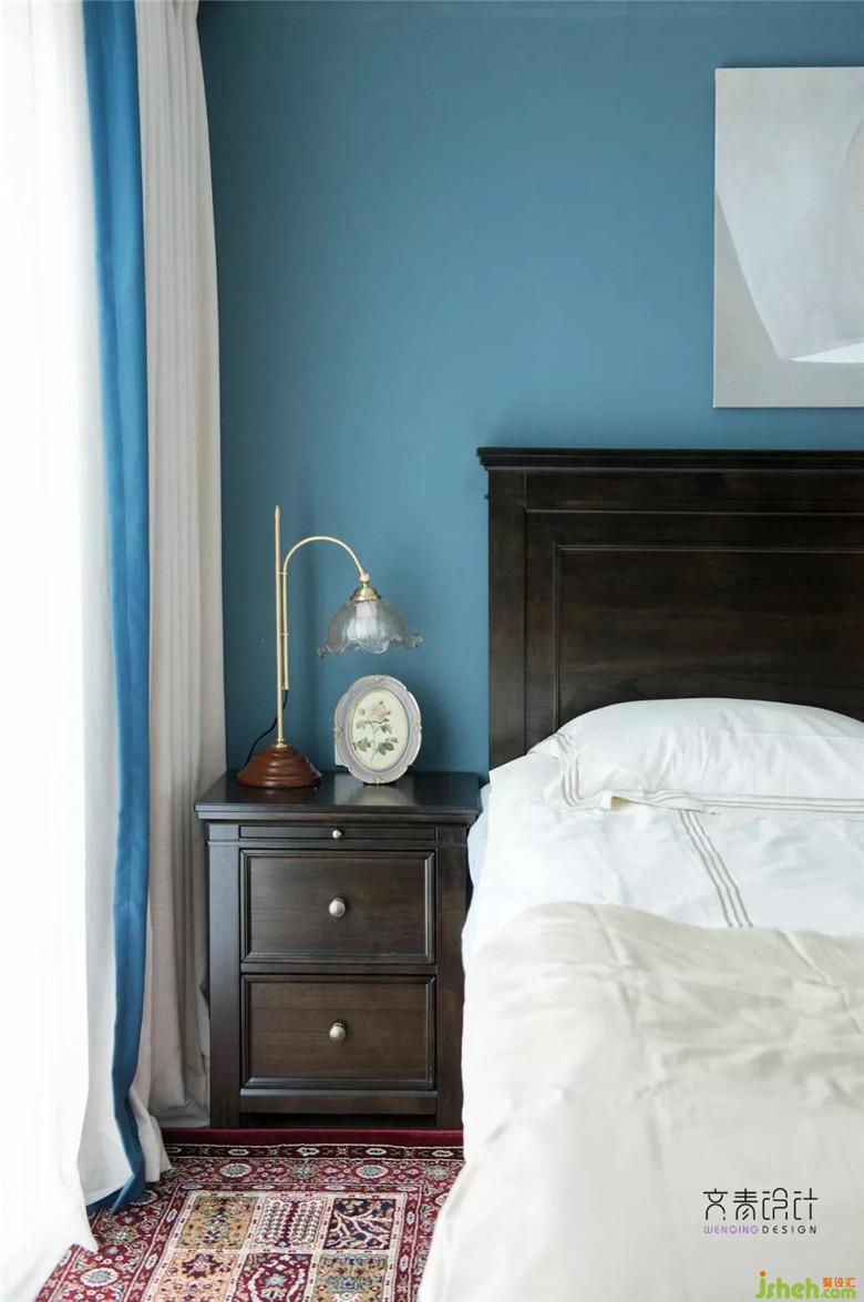 床和床頭柜的組合,皆是線條硬朗,色彩穩(wěn)重復(fù)古的造型。清早起床,是北美鄉(xiāng)村的精致感。