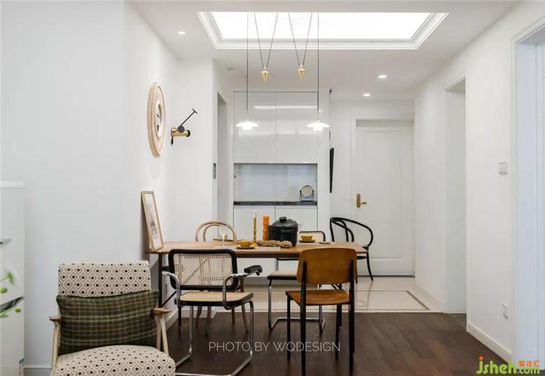 餐廳最有故事的就是這個吊燈。業(yè)主聊起它的時候,是一臉感嘆?!澳菚r候收到開箱,就看到一箱歲盤子,心也碎了一地,賣家說沒貨了,換的這款。其實,有點僥幸,我覺得這款更好看?!?