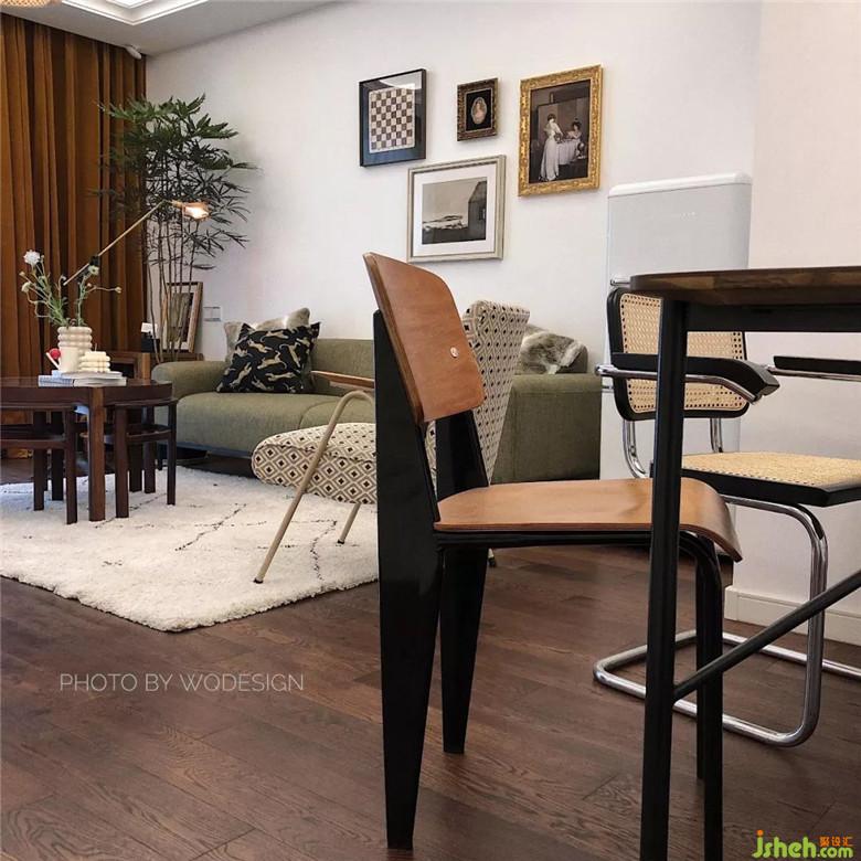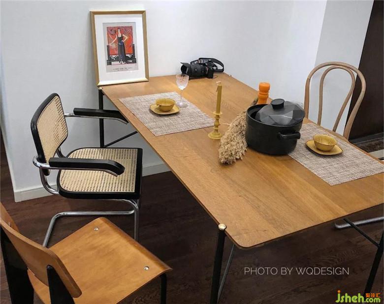 餐廳的幾張椅子都各不相同,“課桌椅”、“辦公椅”、“中式的姥爺椅”,幾種不同場合使用的椅子在一個空間里組合,是隨意里帶著認真的搭配。