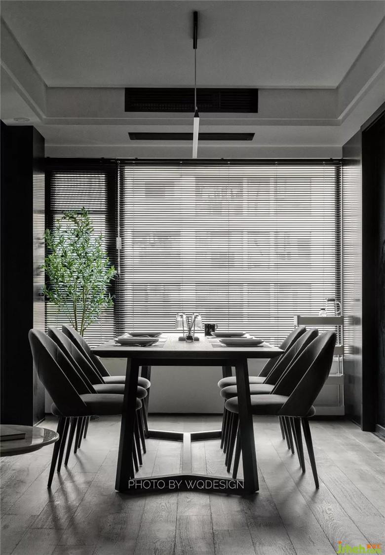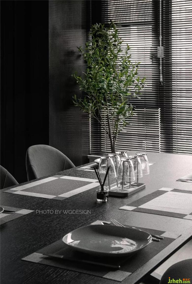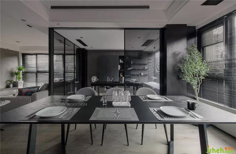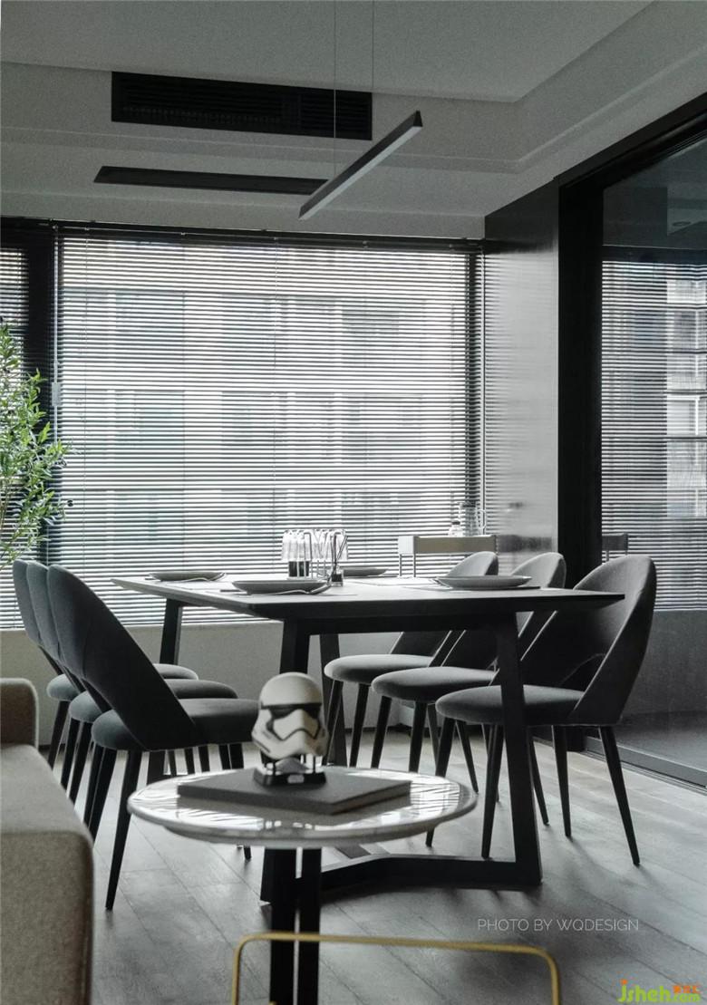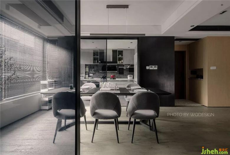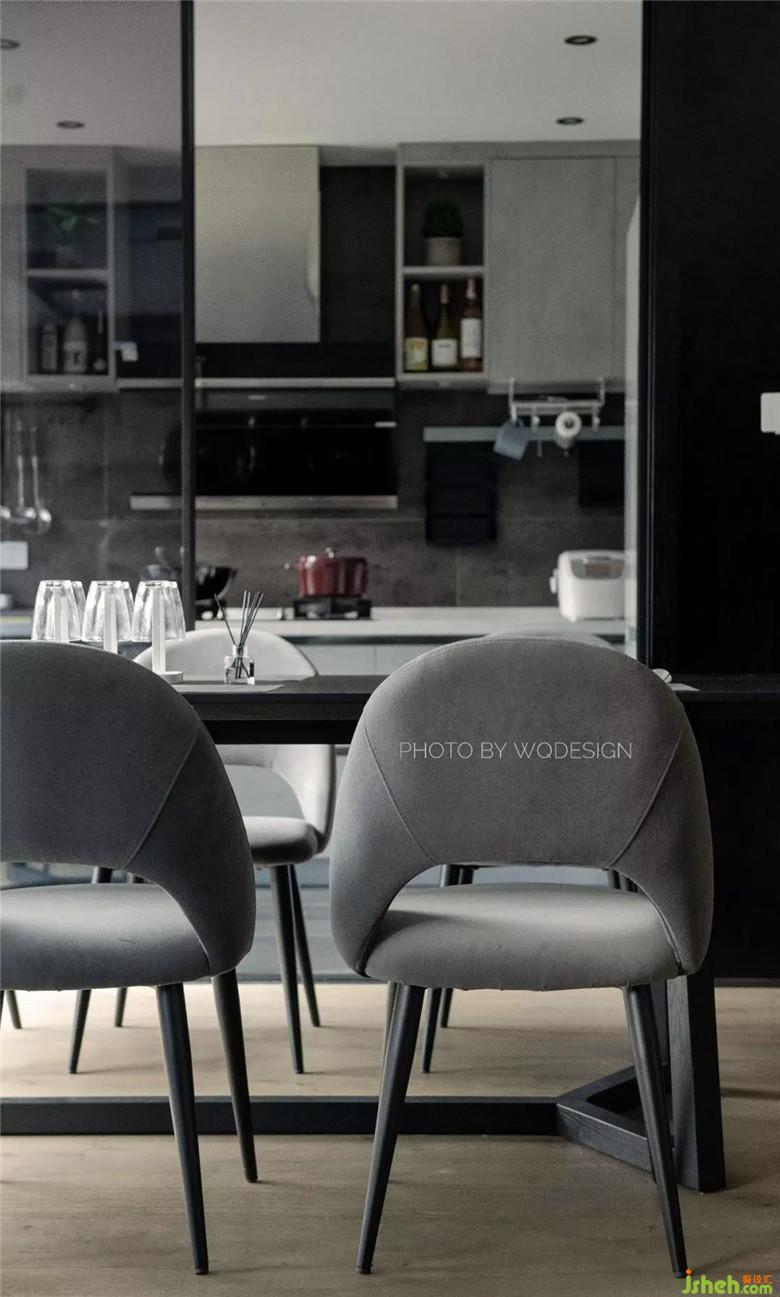 原廚房開門方向由朝門廳改朝餐廳,將動(dòng)線合理化,方便上菜和餐廚交互。