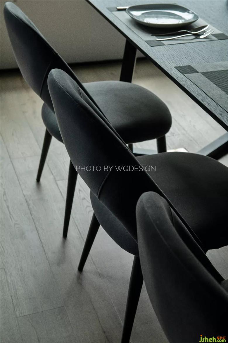 餐椅選用絨質(zhì)感面料的款式,靠背貼合背部,讓就餐環(huán)境顯得安逸、舒適。