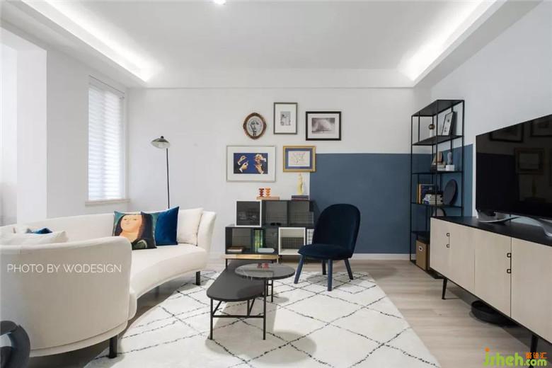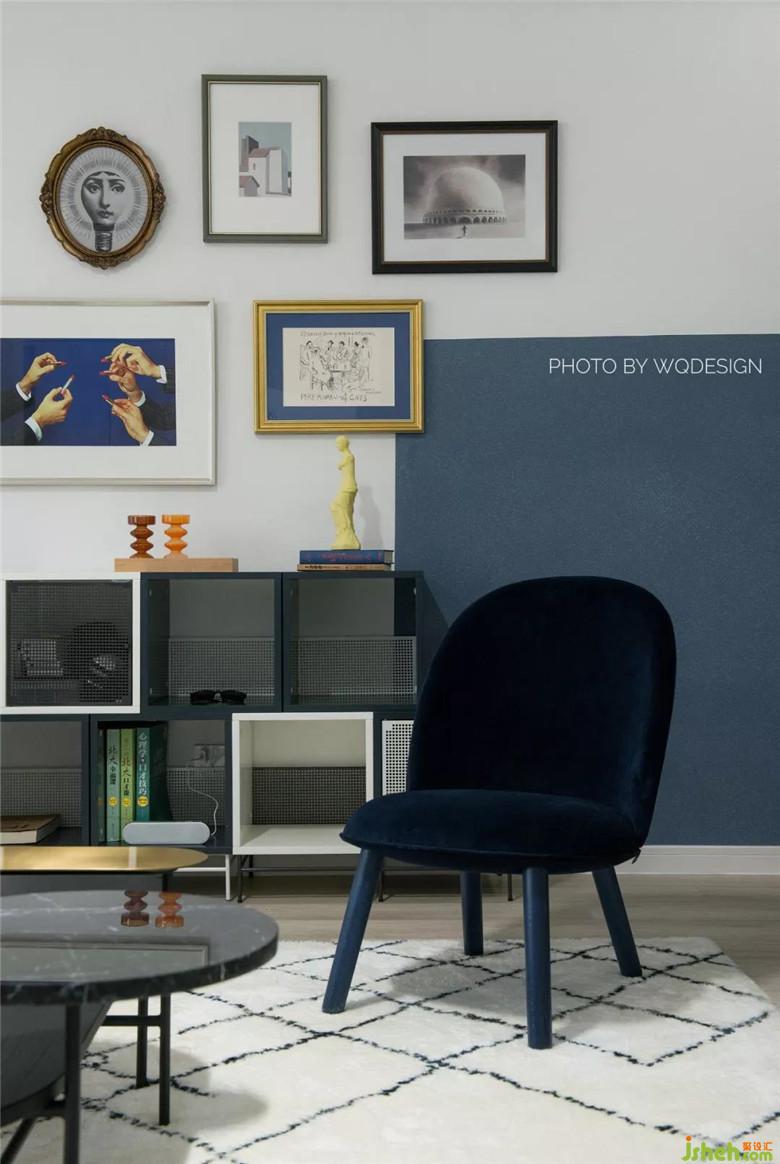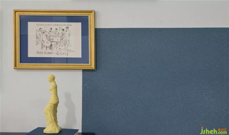 硅藻泥海藍(lán)半墻,裝飾畫撞色塊的配搭,給予各個(gè)角度不同的美感。同時(shí),也避免江邊房會(huì)潮濕潤(rùn)墻的尷尬。