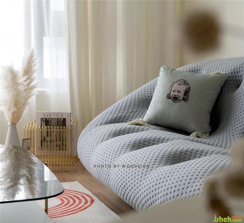 當(dāng)時(shí),業(yè)主特別討厭寫意空間的這款沙發(fā),說不上來哪里不好的討厭。但設(shè)計(jì)師挺中意的,于是每次對(duì)方案的時(shí)候,這款沙發(fā)總是多做一頁方案。業(yè)主:“突然有一天,去ins搜了它,就改觀了,這種感覺挺奇怪的。”