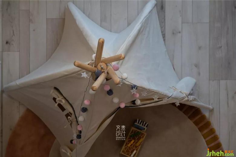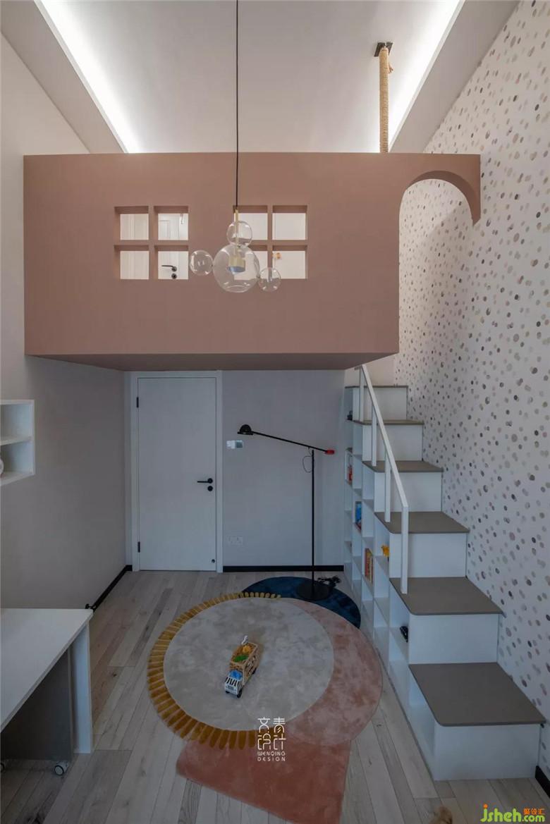 如童話般,兒童房從平面化為立體后,床鋪的位置移至二層,二層的公用衛(wèi)生間在平日沒客人的時候也成了她的專屬。